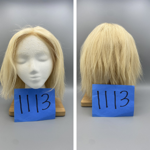 Short, curly light blonde wig