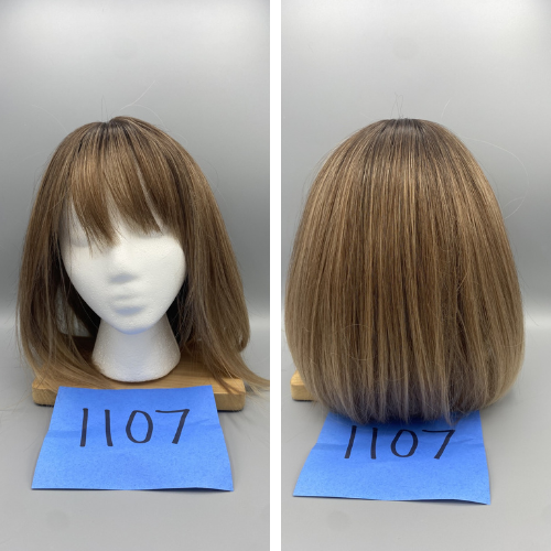 Short, straight, 100% human hair-dark blonde pixie