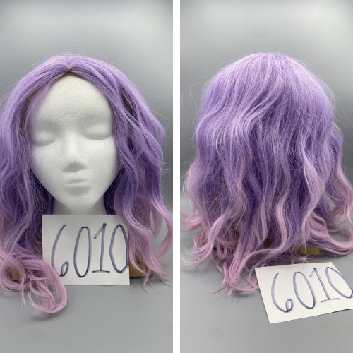 Long, wavy, lavender wig with bangs